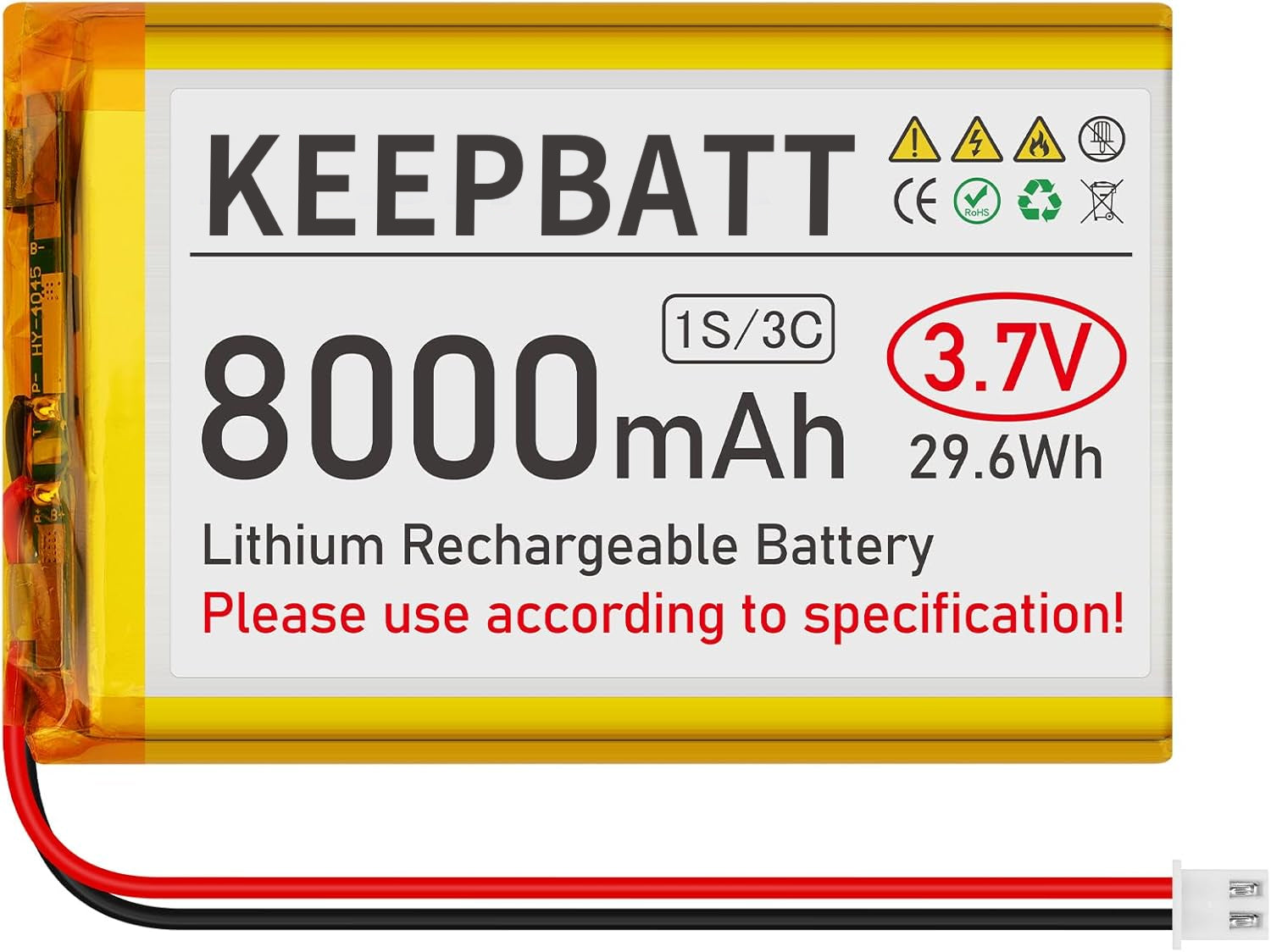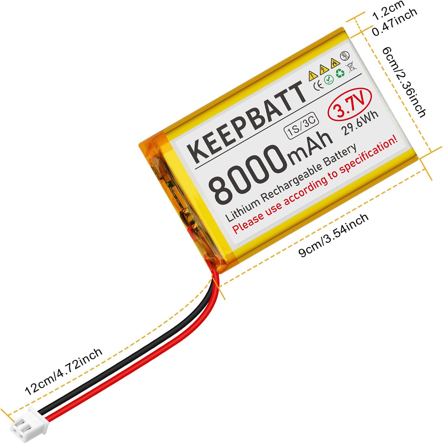 KEEPBATT Batteria LiPo 3,7 V 8000 mAh 126090 ricaricabile 1S 3C con doppio PCB Micro JST PH 2.54 per droni GPS e dispositivi multipli
