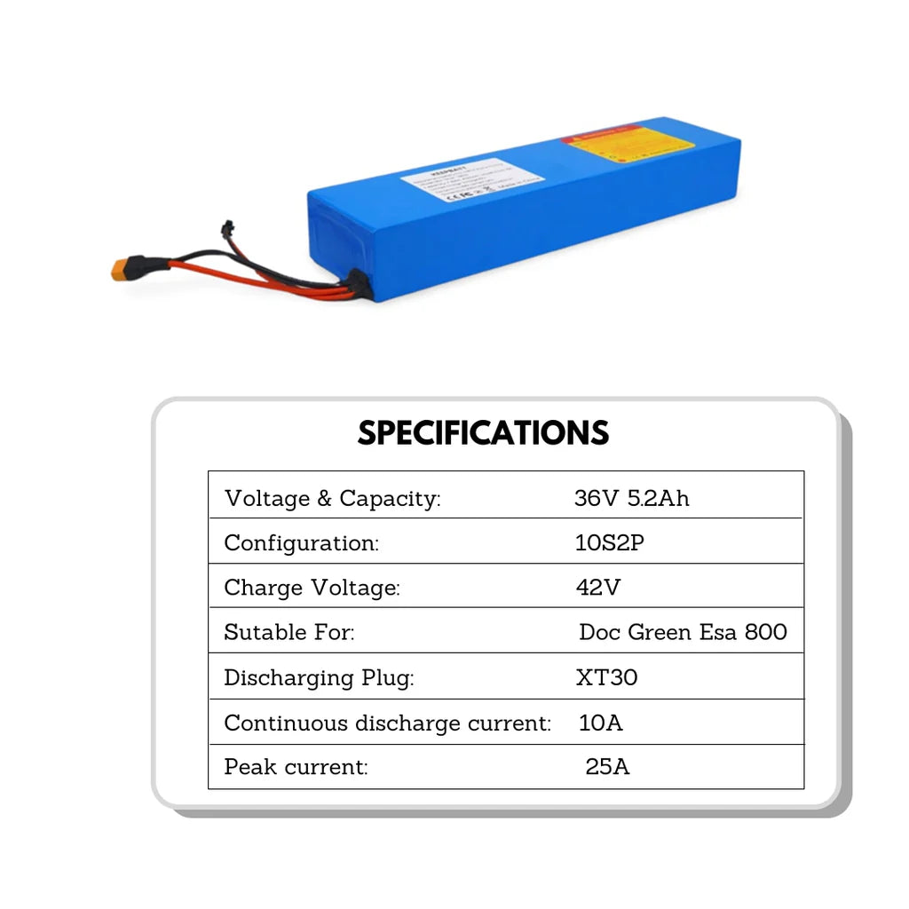 - 1x pacco batteria 36V 5,2Ah per DOC GREEN ESA 800 Scooter